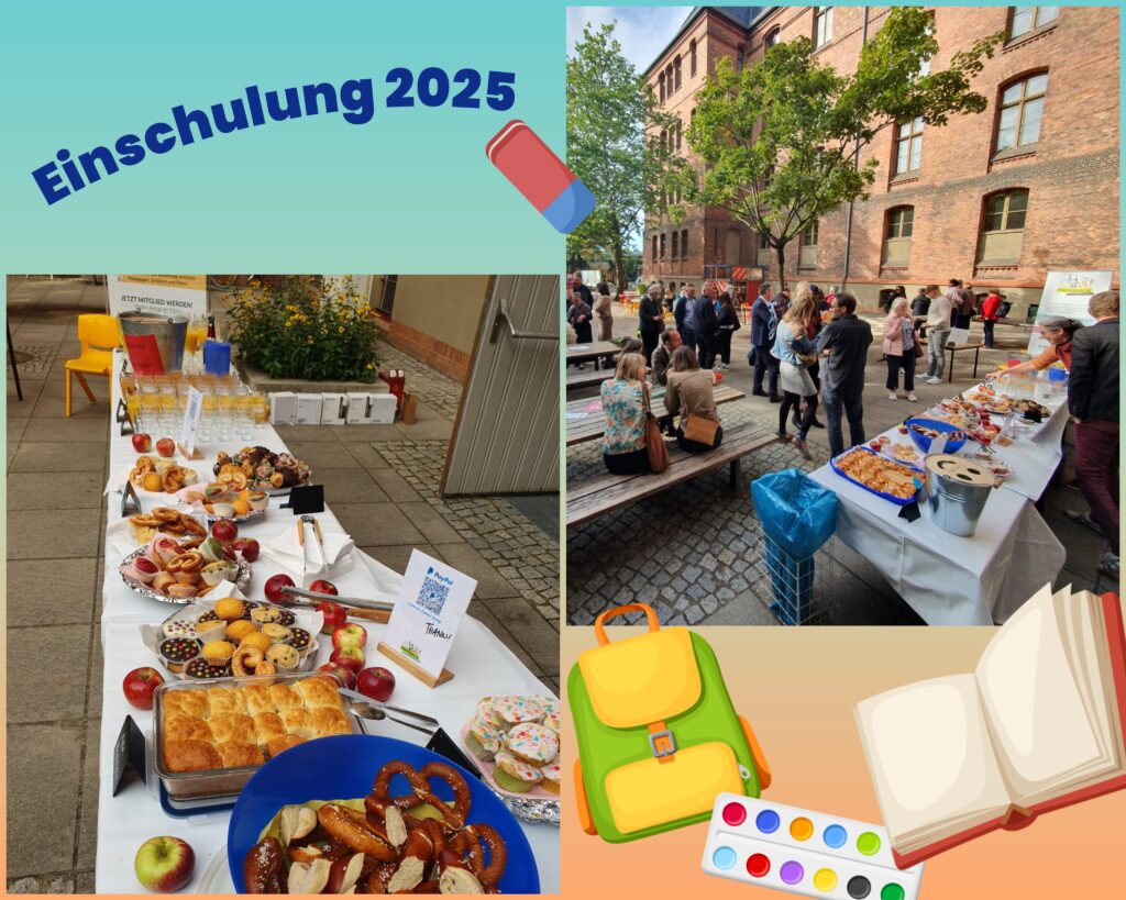 Am vergangenen Samstag, den 13. September, durften wir unsere neuen Erstklässler*innen mit einer tollen Feier begrüßen! Die zweiten Klassen, Lehrkräfte und die Schulleitung hießen die „Erstis“ und ihre Familien herzlich willkommen, während der Förderverein für Snacks und Drinks sorgte – bei schönem Wetter gab es Muffins, Brezeln, Säfte, Kaffee und Sekt zum Anstoßen auf den großen Tag.